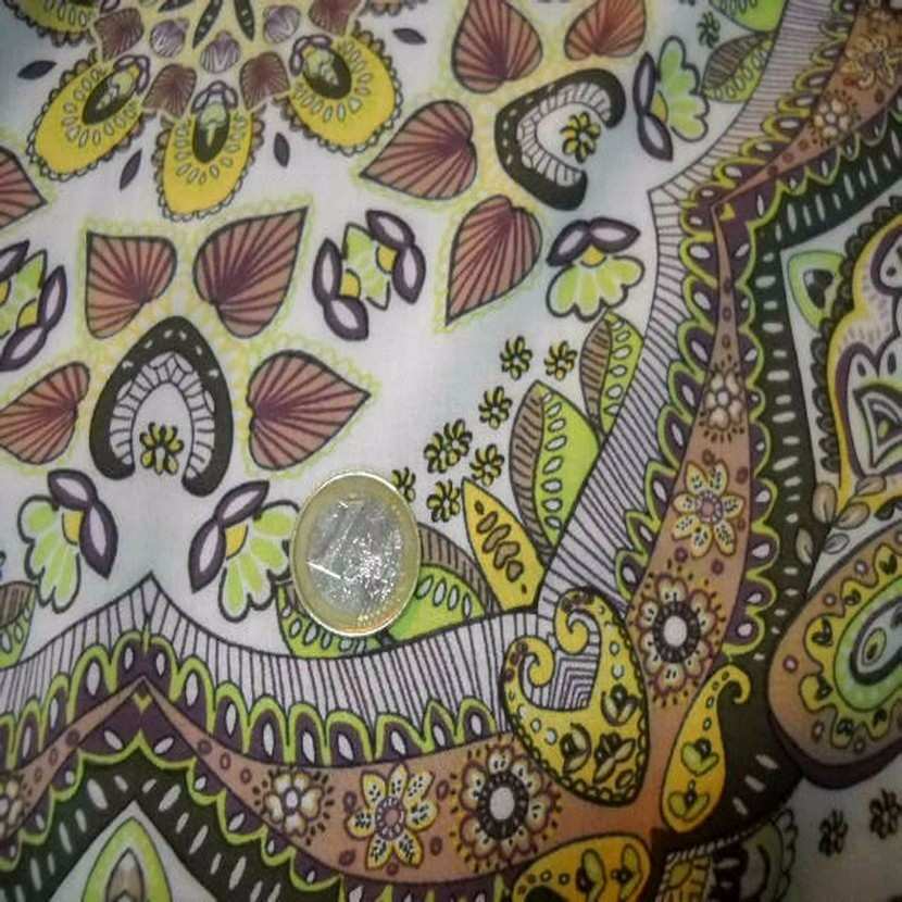 coupon de viscose imprimé ethnique ton turquoise et prune