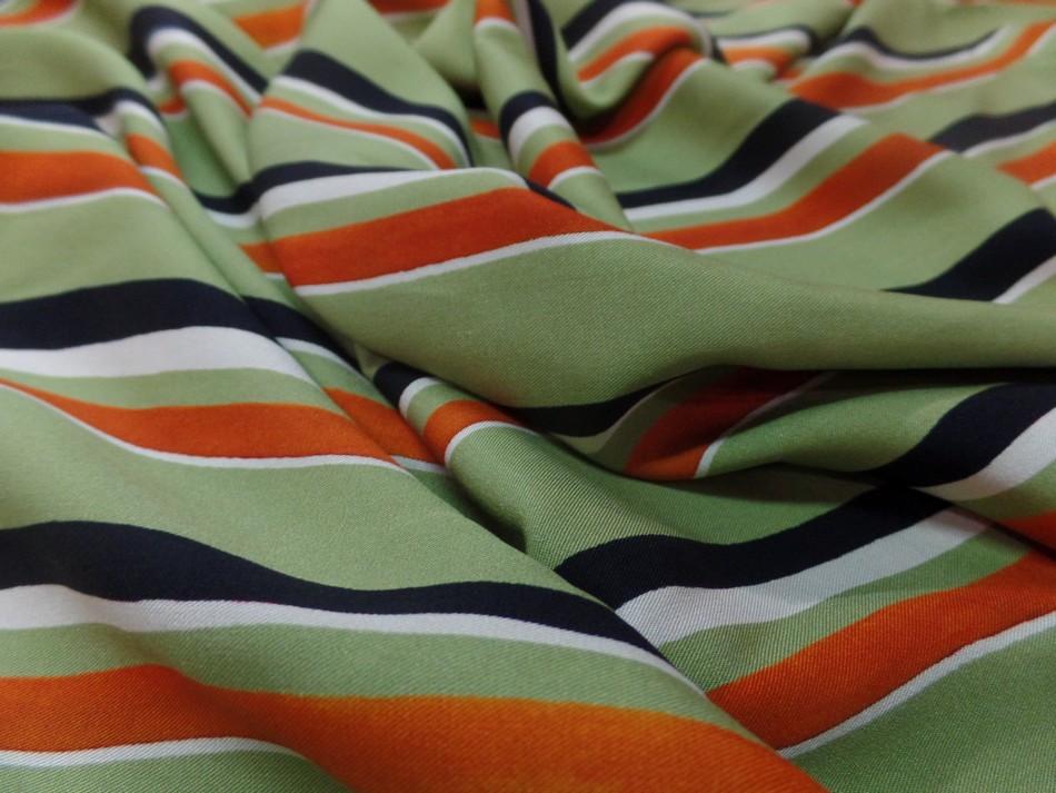 Viscose verte imprimé bandes noir, blanc, rouge