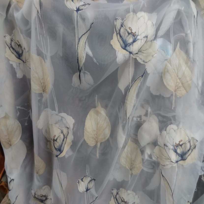 6.5m de voile imprimé fleurs ton mastic,indigo