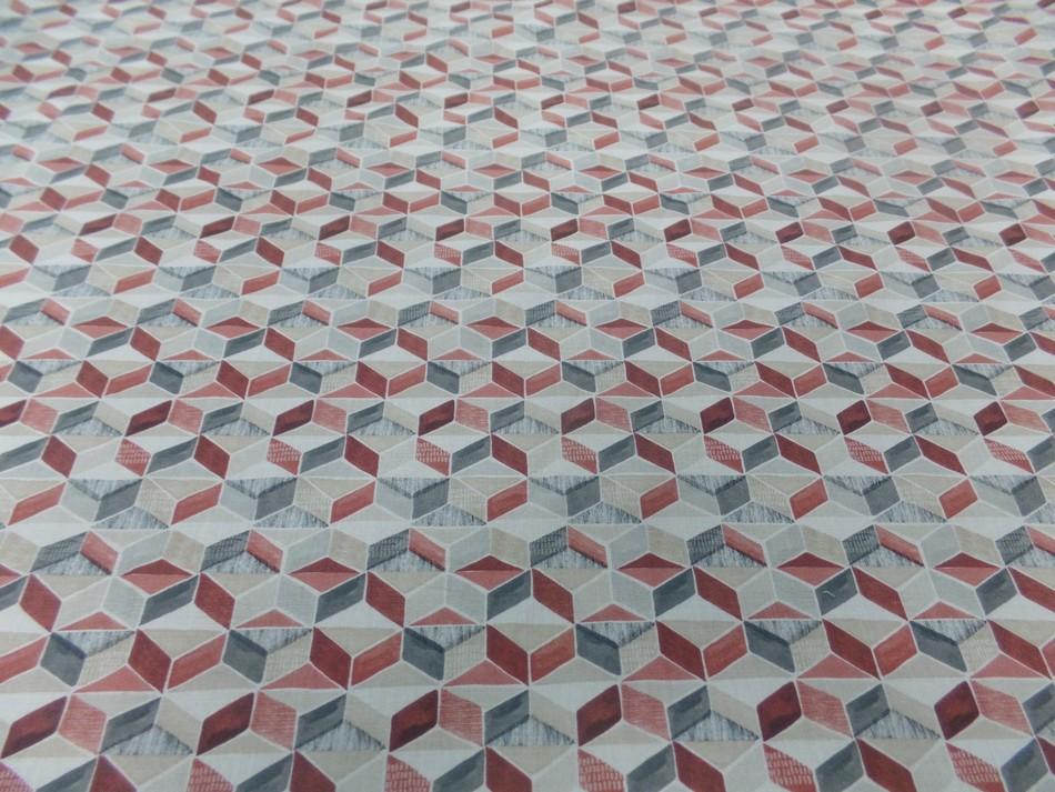 voile de coton blanc imprimé forme géométrique ton de beige bordeaux gris