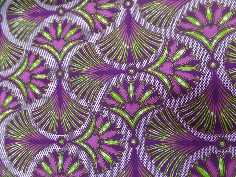 tissu wax super waxam ton prune ,blanc et vert anis ,